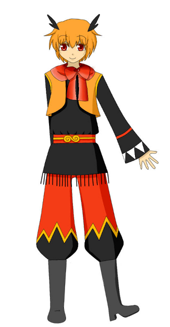 ・瞳は黒で、外はねのオレンジ色の髪で。前髪にメッシュっが入ってます。